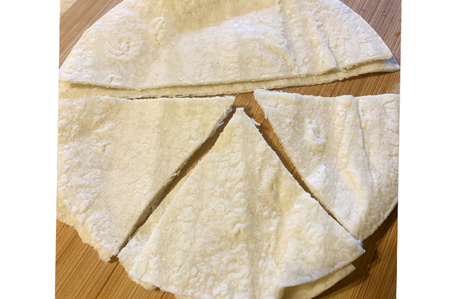 - Lime – 1/4 cup lime juice & 2 T olive oil in a bowl. Brush tortillas with oil-lime and cut into triangles. Sprinkle salt and bake.